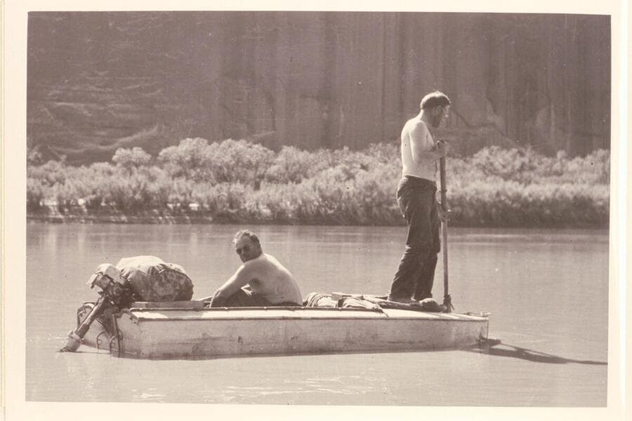 Frank Swain, Bill Chryst and Julius F. Stone in the "Amos" during traverse of Glen Canyon