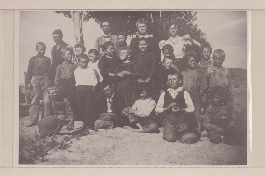Class at Hanksville School. Dave Rust is the teacher. 1899, Spring