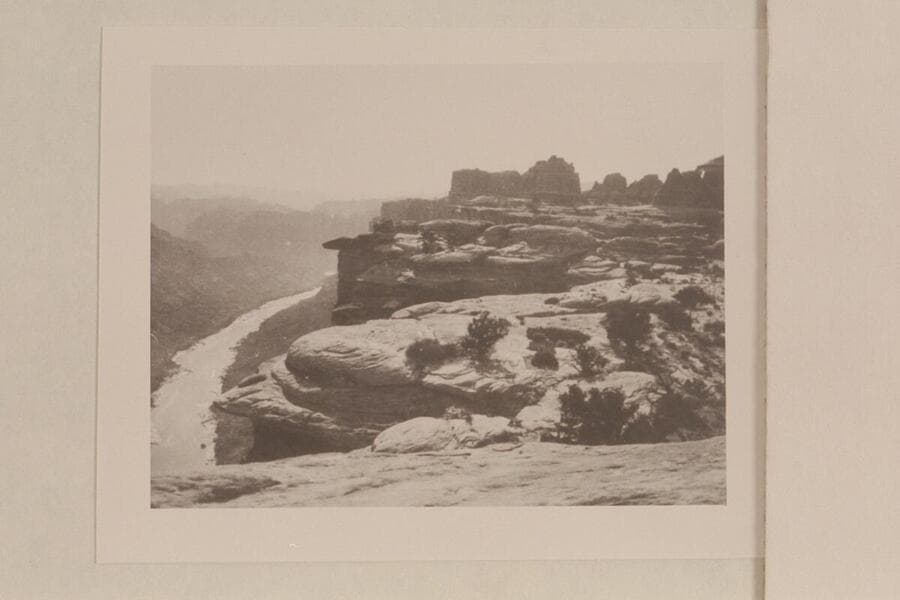 Down from the rim to the Colorado River in Cataract Canyon at approximately Mile 215. One mile below mouth of Green River