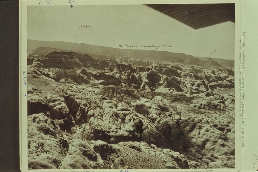 Looking down Glen Canyon from above 73. The Cactus Flat pierced by the canyon of Toh Dylth Ylth is upper right