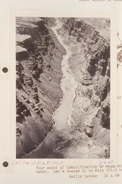 Down Cataract Canyon from Mile 205.5 to 202.5. The outlet of Wide Valley is at bottom; Range Canyon is center. Overlaps with Reilly photo of 9 4 60 showing Mile 205-6