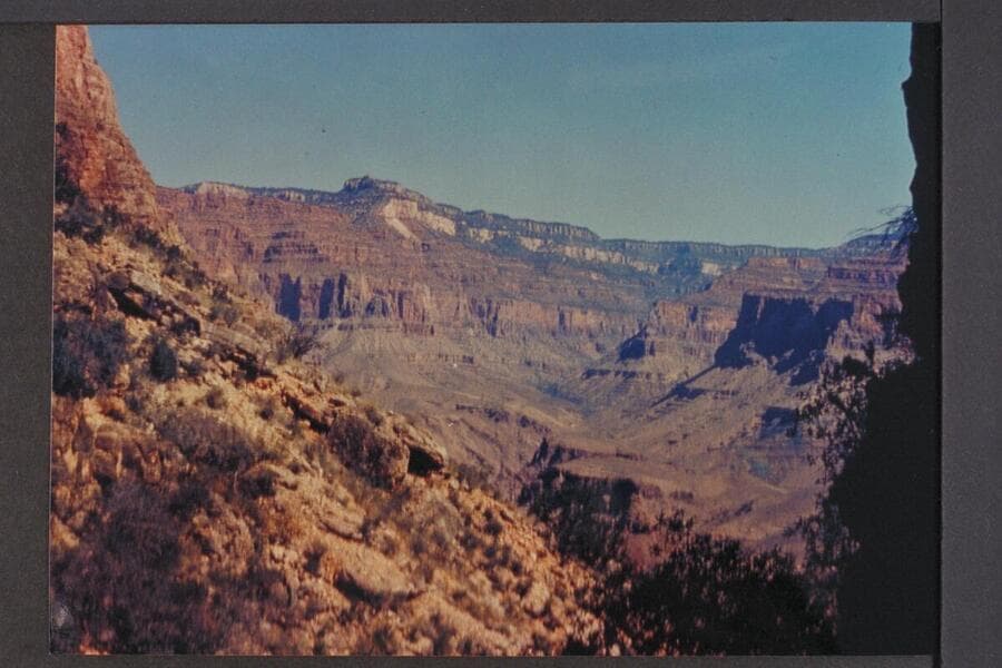 Redwall from near Shiva-Osiris saddle and on east side of tributary of Crystal Creek between Ra and Osiris. It offers no easy climbing route