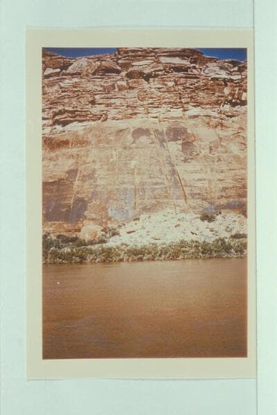 "Pumpkin Rock," left bank, two miles north of San Juan River. Pumpkin located at top of talus, just below smooth wall face. Letter of Edward T. Vetter, 1957, Dec. 23