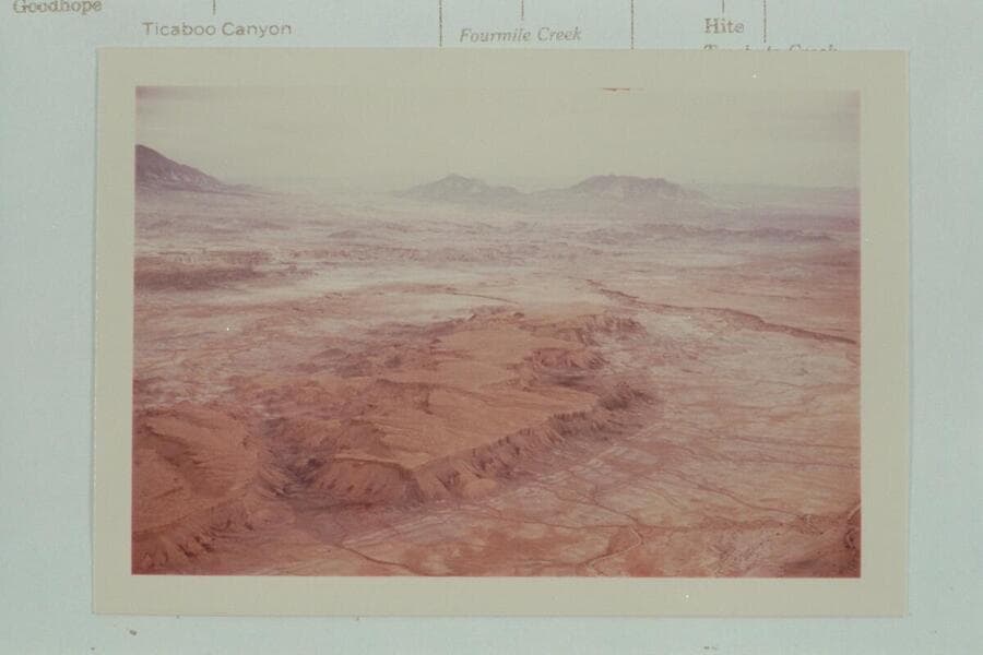 From Hall Creek northeast to the slope of Mt. Hillers at left, Mt. Holmes at centger and Mt. Ellsworth