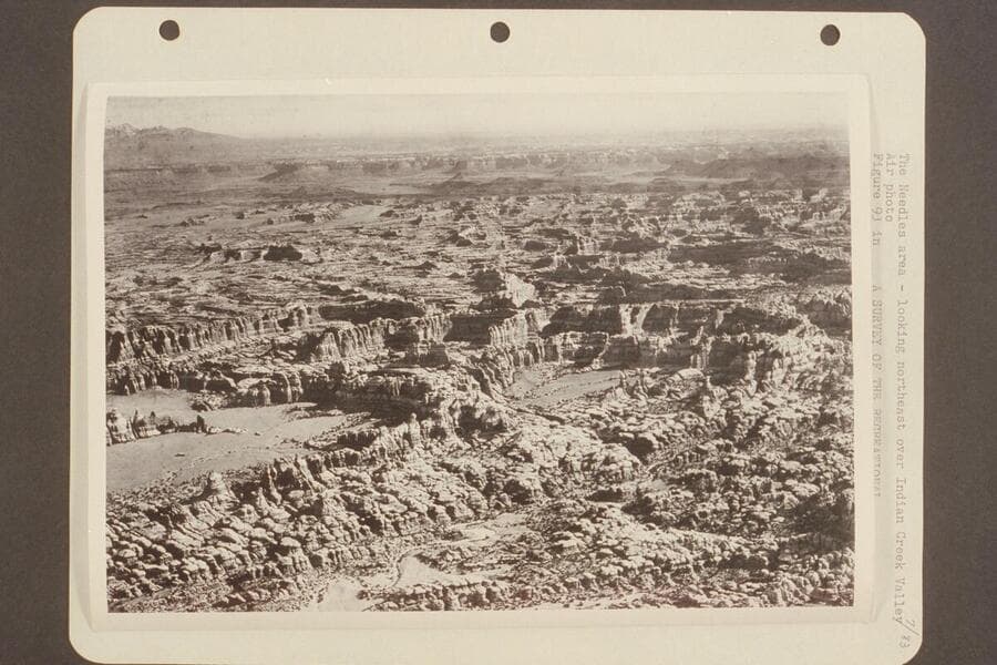 ![The Needles. Chesler Park. Southeast of the Junction. From near the southern end of Cyclone Canyon [N end Devils Lane] This area is at upper left in 584 CTCN 213.33 and 584 CTCN 213.34. 584 CTCN 212.36 shows terrain to left of this print](/_next/image?url=https%3A%2F%2Frail.huntington.org%2FIIIF3%2FImage%2F22APN4IFBKAS%2Ffull%2F%5E360%2C%2F0%2Fdefault.jpg&w=750&q=75)