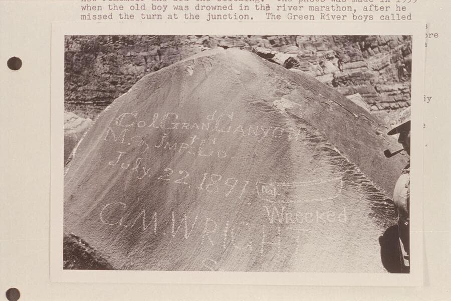 Brown-Stanton inscription at right bank of Cataract Canyon at Mile 216.3