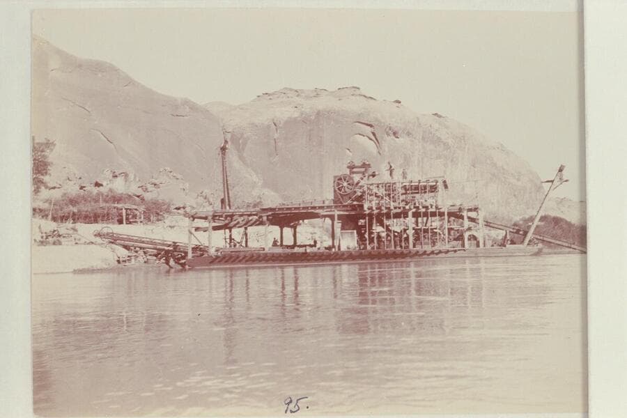 Stacker ladder ready to raise dredge of the Hoskanini Mining Co