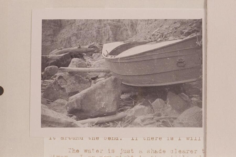 Holmstrom portage at the rapid in Cataract Canyon which he numbered 16. Between Miles 202 and 203. October 29 or 30. Approximate gauge: 6,100 cfs