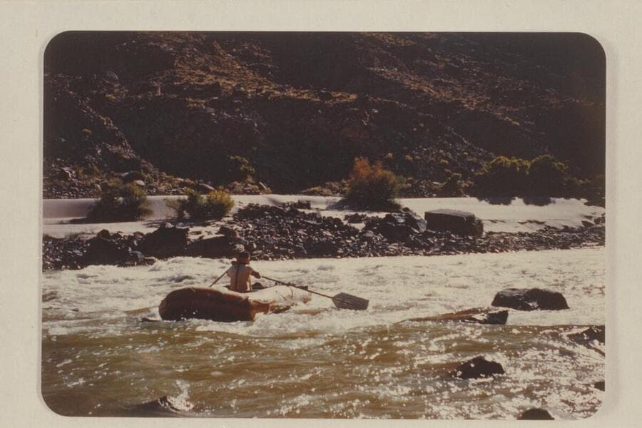 5th Rapid, Mile 210.5. Russ Campbell and Hank Dyer in the "Dixie Belle" just before the upset