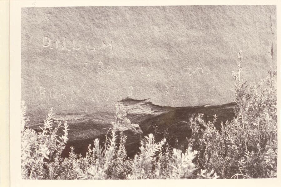 Inscriptions on up-river side of mouth of Stanton Canyon, Mile 121.5