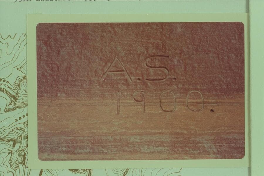 Inscription in the big amphitheatre on the south cliff wall just upstream from Moqui Creek