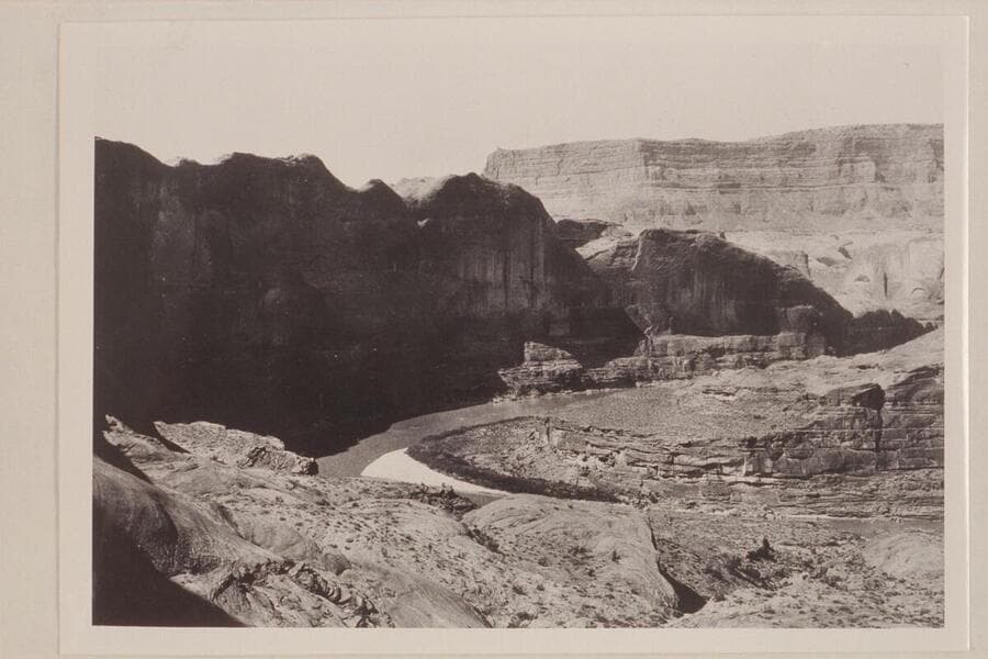 San Juan Dam site--general view downstream, Mile 78. From 1922, Sep.-Oct., trip from Halls Crossing to Lees Ferry. Photo No. 32 of Stabler album