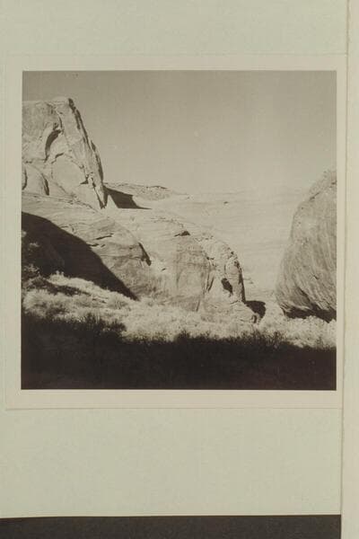 Down the middle fork of 73.6 from near camp. Undercut at right is the stream. At upper left is edge of mesa from which were taken photos 599 GNCN 73.52.5; 52.6; 51.8; 51.9