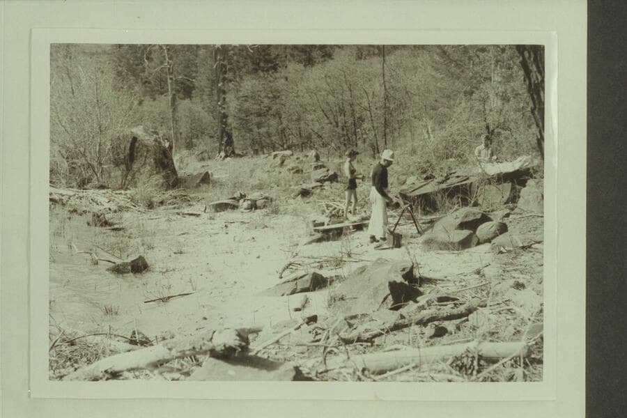 Camp of 1948, May 19. Dolores River. Becky Walker, Margaret Marston, Pres Walker