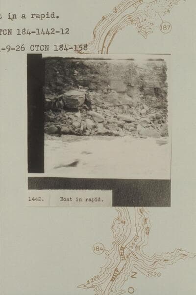 Boat in Rapid 43 at Mile 184.1. Photo captioned "Boat in a rapid."