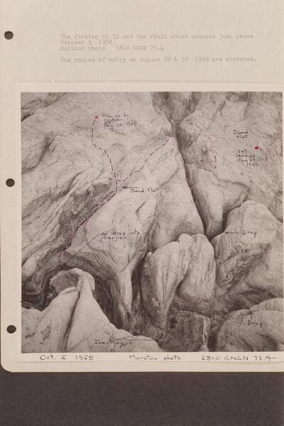 Downstream in the northeast fork of canyon 73 from just above its junction with the middle fork