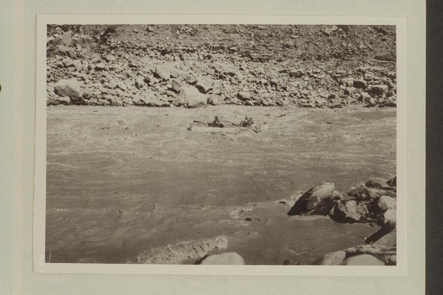 The Eddy crew lining Dark Canyon Rapid. Eddy photo No. G. C. 37. Copied from Carey collection