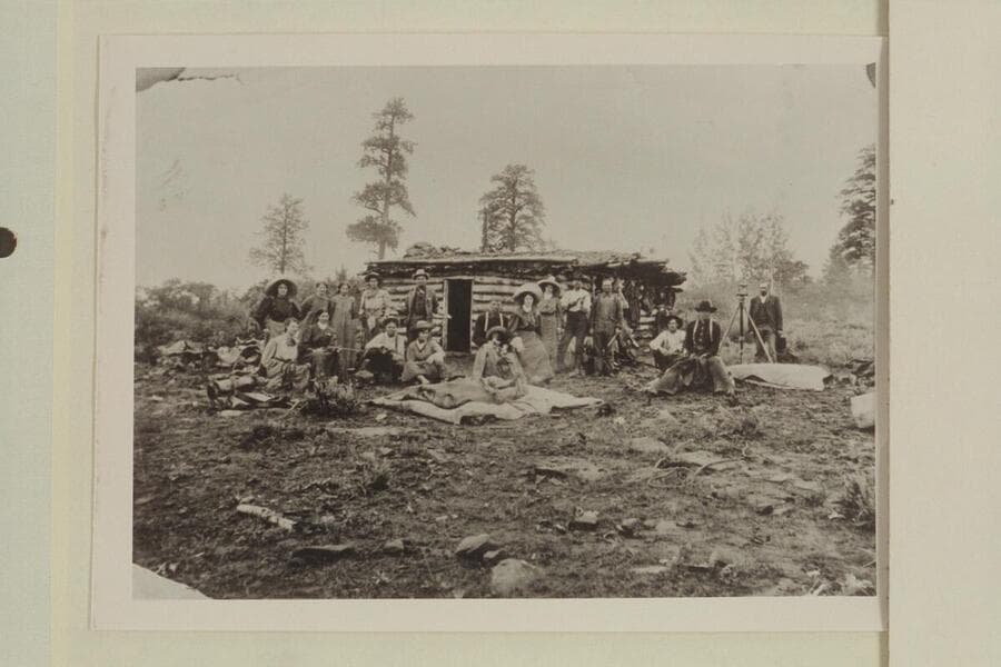 Bluff City tourists at the Cattle Camp of J. F. Adams, Elk Mountain, San Juan County, Utah. Photo from the Harshberger collection