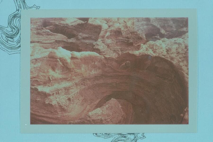 Stevens Canyon (Skyline) Arch. At the bottom of the print is the mouth of Stevens Creek. At upper left is the mouth of Coyote Gulch