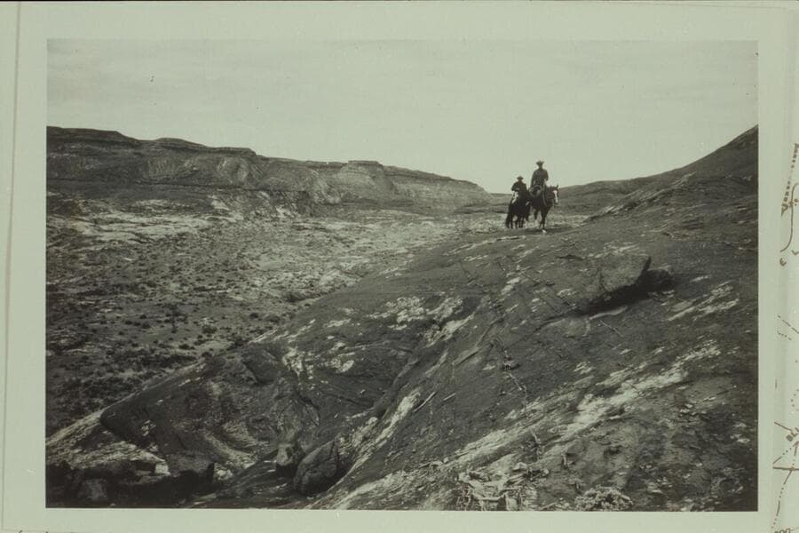 Archeyes Masland riding on the flat at the foot of the Dugway at left bank at Hole in the Rock