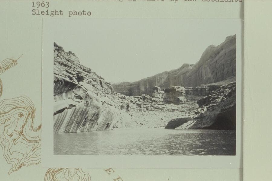 Inscriptions- mouth of Escalante River being submerged by Lake Powell