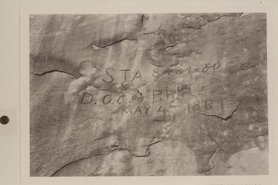 Brown-Stanton inscription at right bank below the confluence at approximately Mile 216.3