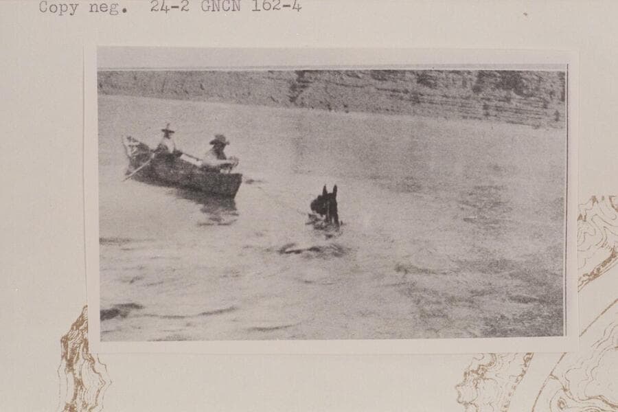 Taking the leader across the Colorado River at Hite