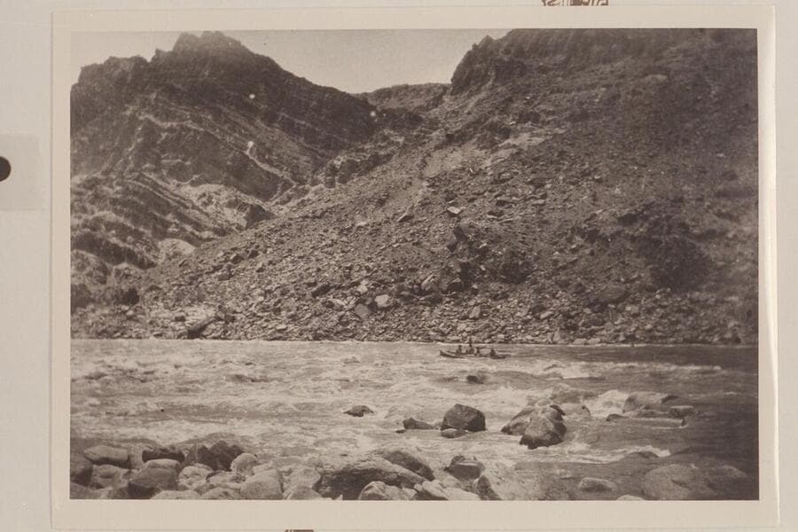 The rock which trapped the Best Expedition Boat No. 1. Mile 204 1/2 in Mile Lone Rapid