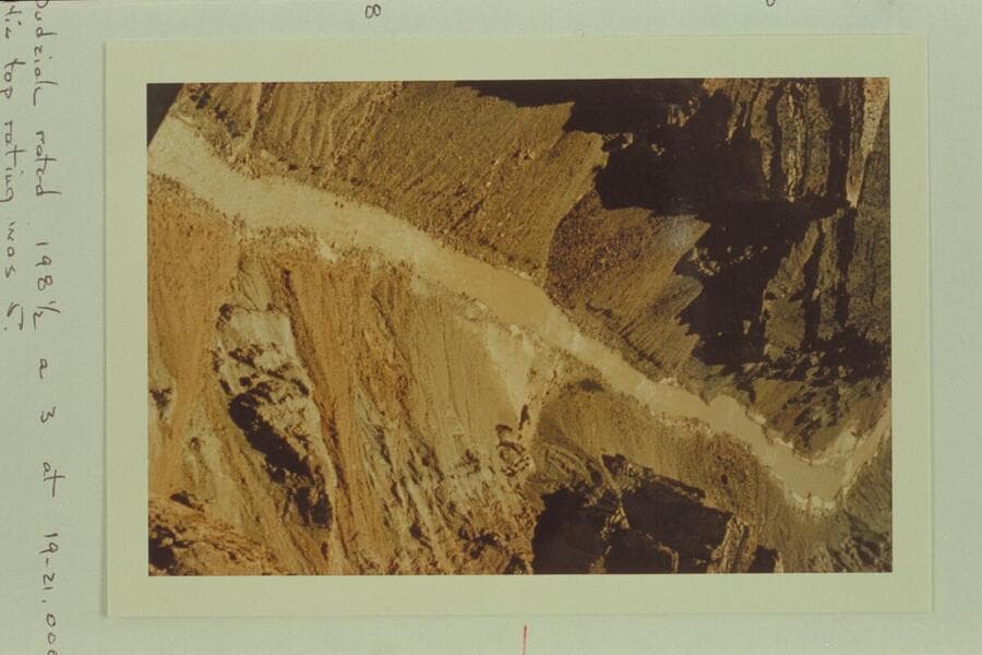 Into mouth of Gypsum Canyon from above the creek at approximately Mile 197