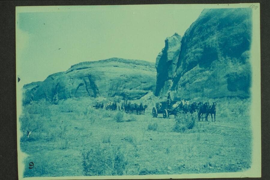 Sarah Fraser on the rim above the wreck of the Stone-Stanton dredge in Glen Canyon above Hansen Creek
