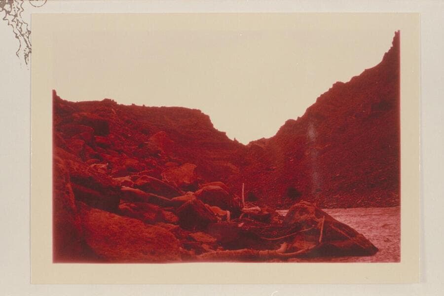 Across the river from the right bank to the side canyon at Mile 211.2