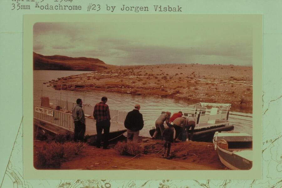 Hite Ferry. Frank and Willard Wright in the boat at right shore
