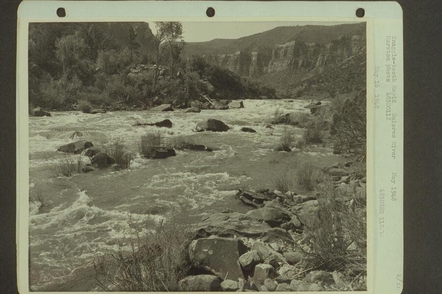Margaret Marston in camp at Snaggle-Tooth Rapid on the Dolores River