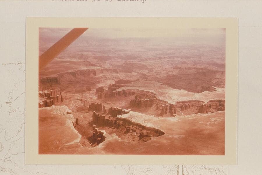 Monument Canyon; Standing Rock Basin. Junction Butte at upper left and the Henry Mountains on the skyline
