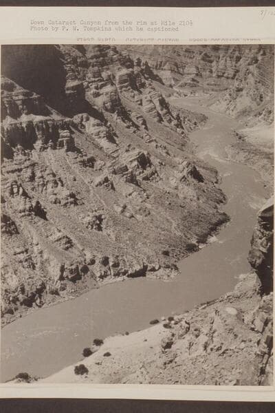 Down Cataract Canyon from the rim one mile below the Junction. ; South from rim of Cataract Canyon one mile below the Junction