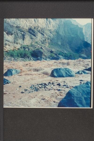 Run of Vulcan Rapid by Rowland deck boat; coming up to beach from below Rapid