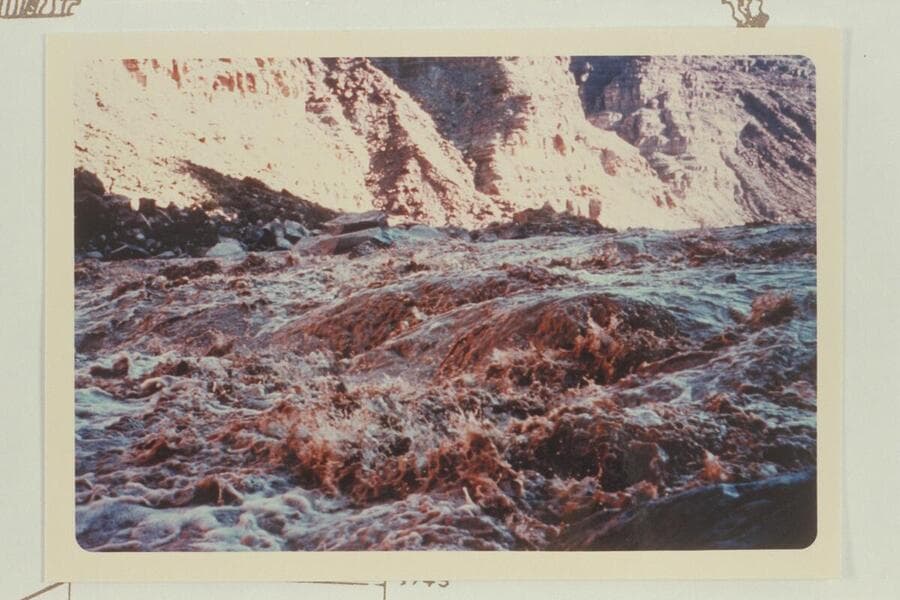 Up river at the foot of the rapid below the mouth of Range Canyon. Approximately Mile 204.65