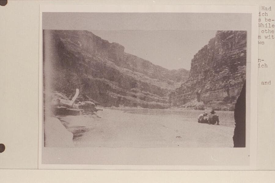 Brown-Stanton Survey, 1889. Captioned: No. 110, Railway Survey, Colorado River 1889, Narrow Canon, Up