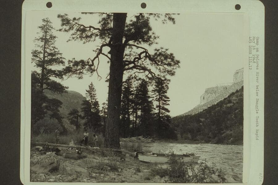 Margaret Marston in camp at Snaggle-Tooth Rapid on the Dolores River