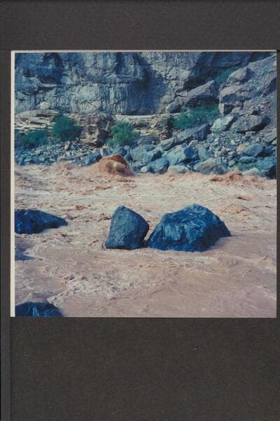 Run of Vulcan Rapid by Rowland deck boat; coming up to beach from below Rapid