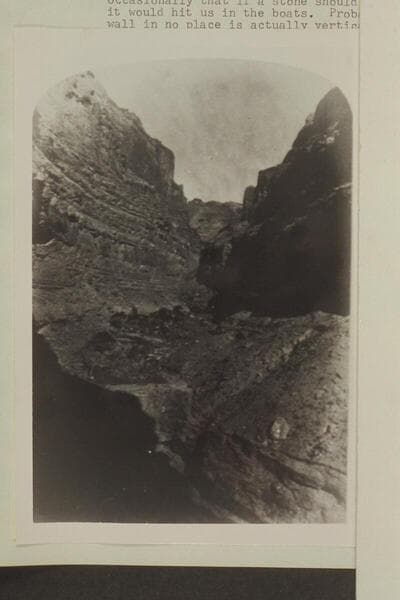 View of the Wall (See men and boats on bank of river). The rapid is Dark Canyon Rapid