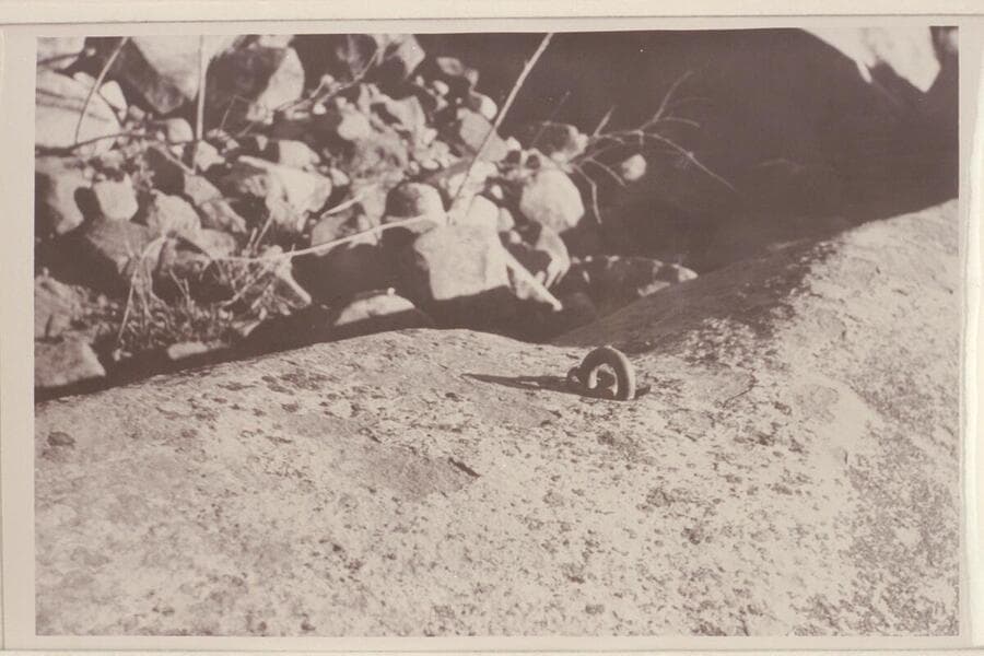 Ring bolt on boulder at Halls Crossing, left bank, Glen Canyon