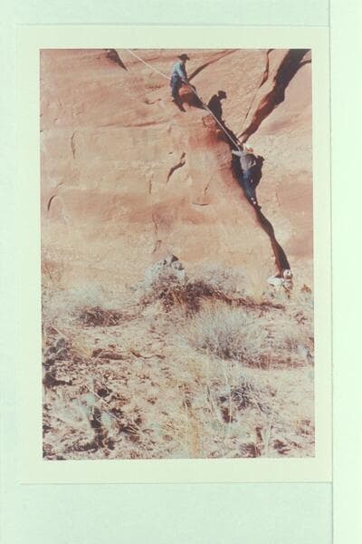 On the trail between the middle fork and the southwest fork--73.6. Eisaman photographed Archeyes Masland going up the rope