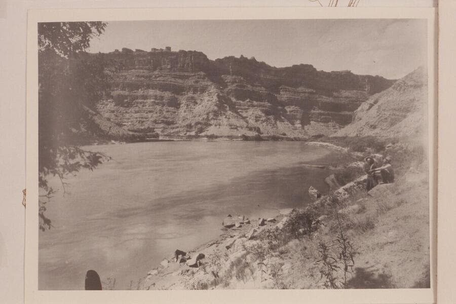 Up Cataract Canyon from Mile 216.5, left bank to the mouth of the Green River. The Green River enters from the left and the Grand River from the right