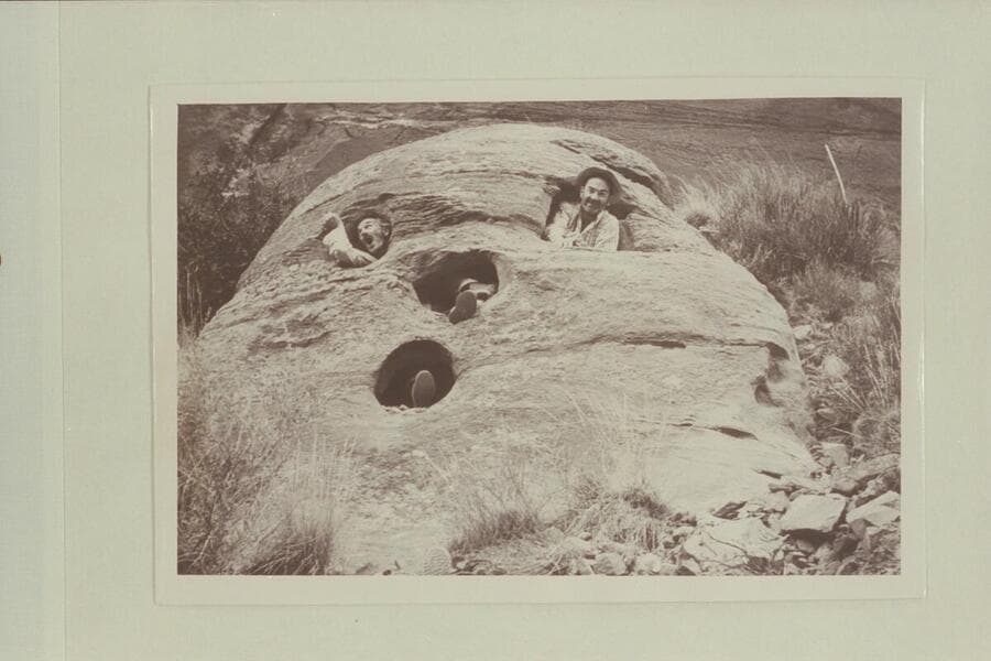 Pumpkin Rock. Harry Aleson and Dr. F. M. Smith in the rock