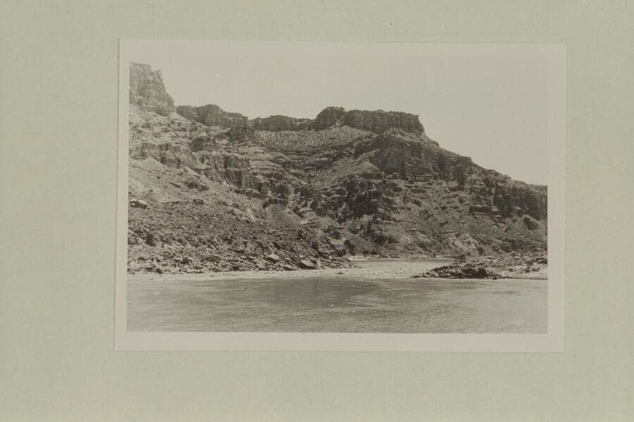 Across Rapid No. 1 in Cataract Canyon. Across to right bank and slightly upstream. Approx. gauge: 25,000 cfs