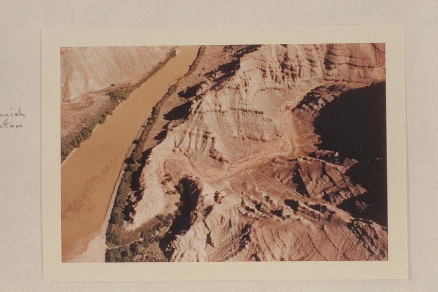 Mouth of Butler or Red Lake Canyon. The mouth of the stream bed is Mile 213