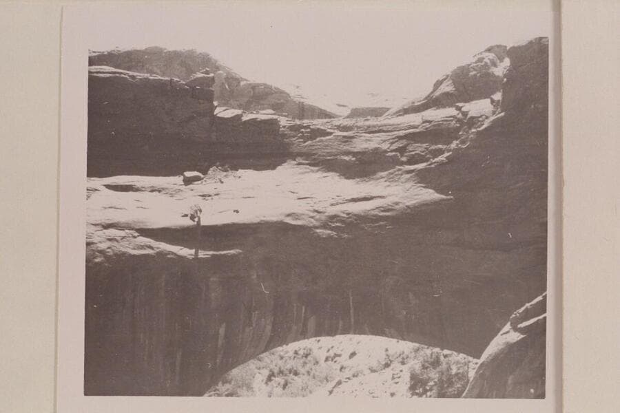 Herbert E. Gregory Bridge. From the side of the canyon upstream from bridge