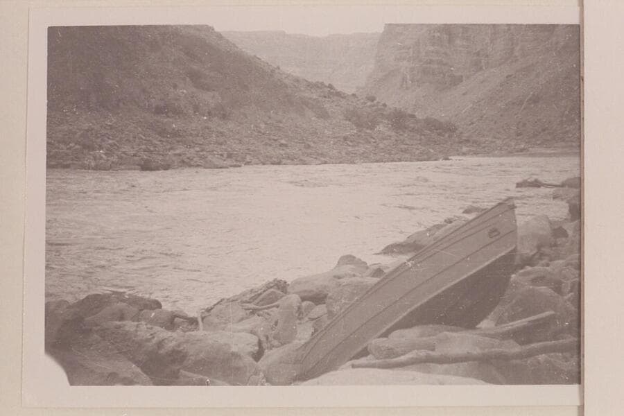 Holmstrom portage at the rapid in Cataract Canyon which he numbered 16. Between Miles 202 and 203. October 29 or 30. Approximate gauge: 6,100 cfs