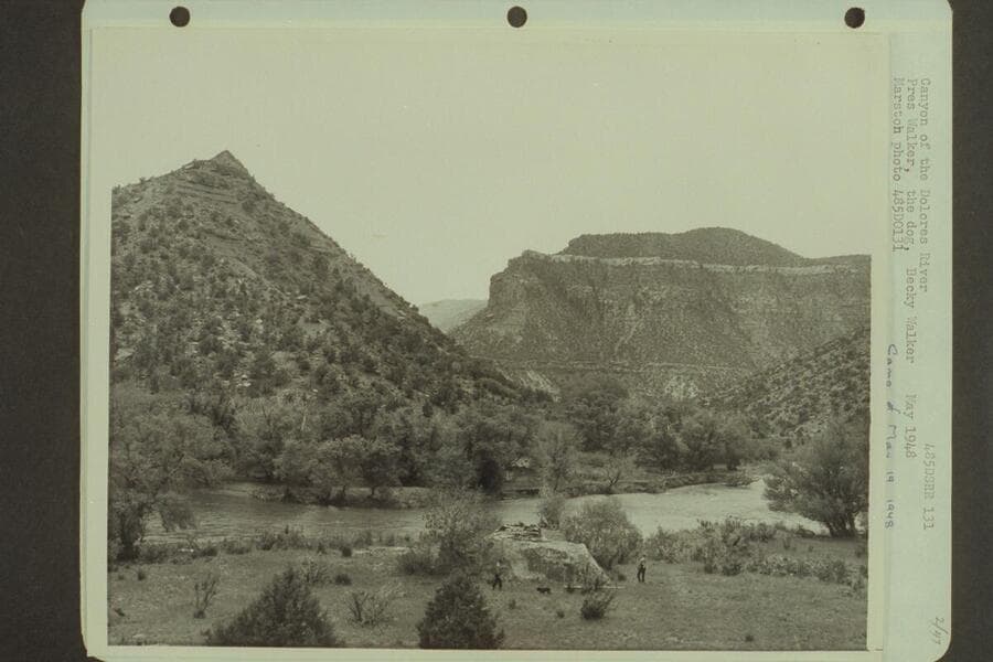 Camp of 1948, May 19. Dolores River. Becky Walker, Margaret Marston, Pres Walker